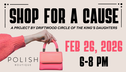 Join Driftwood Circle for drinks & appetizers 6-8pm at Polish Boutique Thursday, February 26, 2026! Polish Boutique is donating 10% of regular priced sale for the ENTIRE day so you can shop all day!