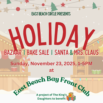 Join the East Beach Circle November 23rd, 2025 for their Holiday Bazaar & Bake Sale!
