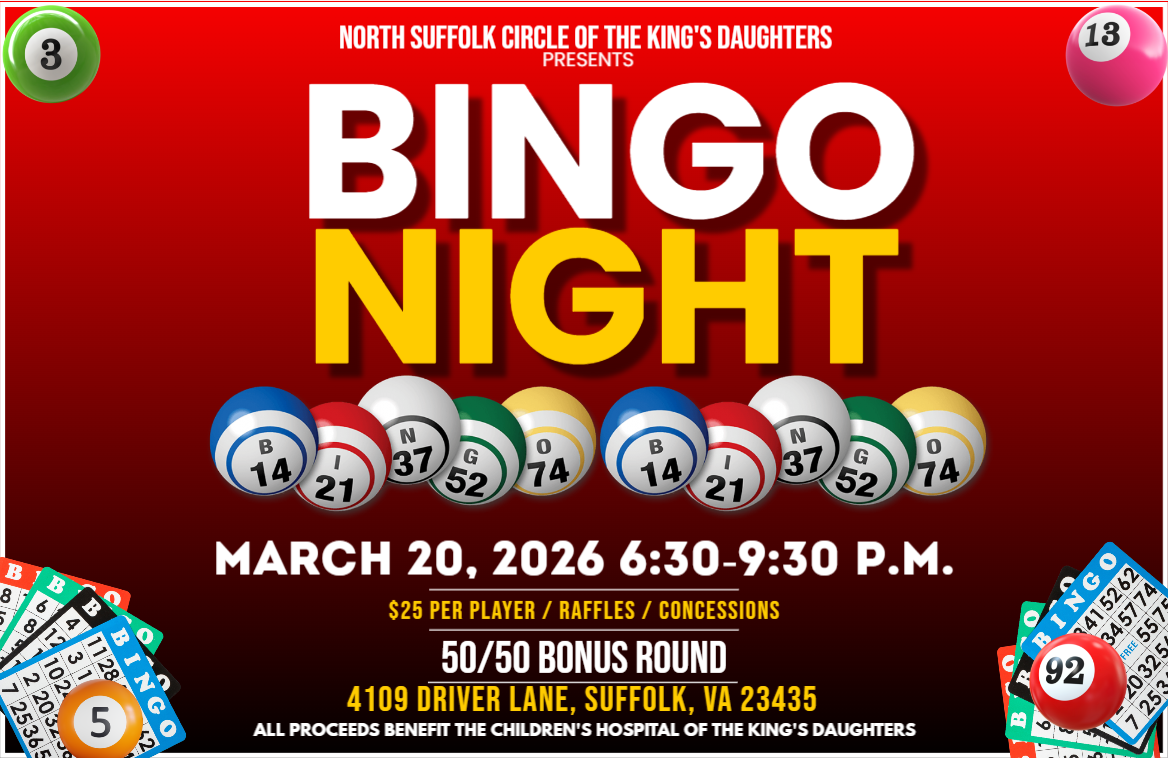 Description: For the past few decades, North Suffolk Circle of The Kings Daughters has been dedicated to lending a helping hand to the wonderful children who have had to come to CHKD.